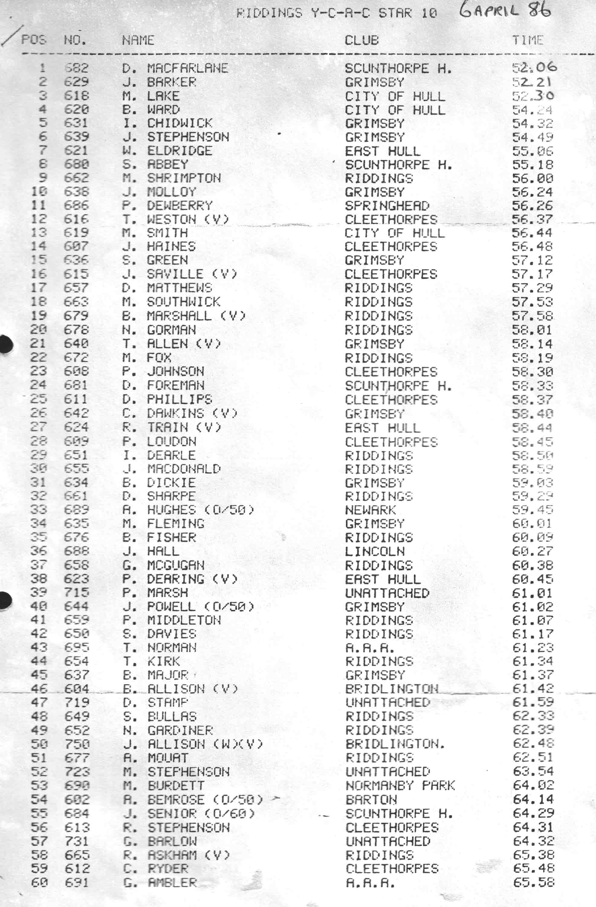 Riddings 10 Mile Scunthorpe 6th April 1986